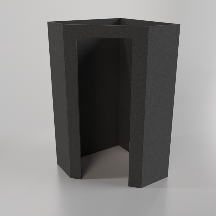 Корпус — ДСП. Внутри — зеркало, крючки, труба для крепления шторы.