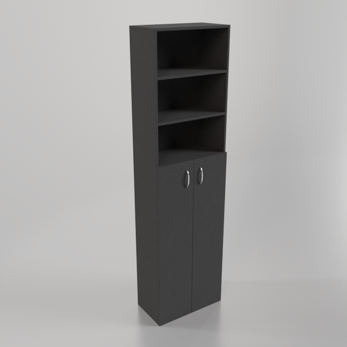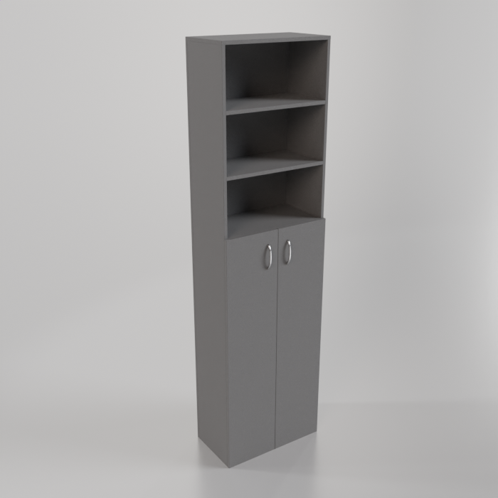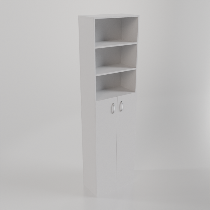 Материал — ДСП, задняя стенка ДВП. 3 полки (4 ниши) закрыты дверями, ручки хром, 6 полок (7 ниш)